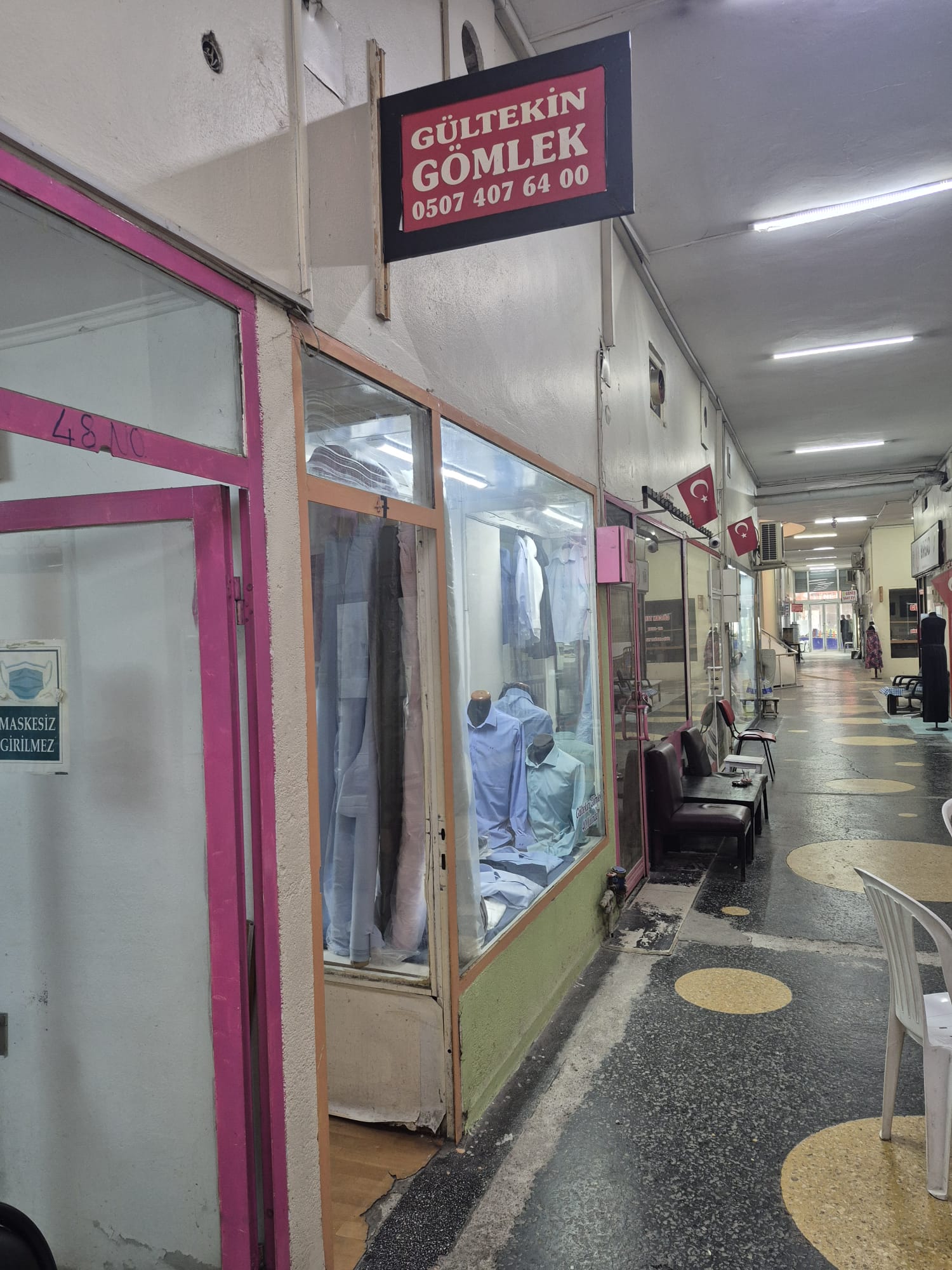 Pasajın temiz ve eski koridorunda çay ocağının önünden geçince bir tabela çekti dikkatimi 'Gültekin Gömlek'